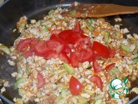 Добавить зелень, паприку, соль и перец. Тушить 1 минуту. Отварить пасту, сверху выложить овощи с фаршем. Приятного аппетита. |
