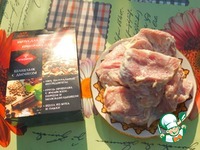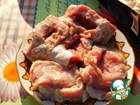 На угли разбросаем замоченную ранее щепу. Обжариваем мясо на углях по 5-7 минут с каждой стороны. |