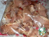 Куски вырезки укладываем в пакет и насыпаем туда специи. Пакет закрываем и тряся его хорошо перешиваем содержимое. Оставляем мариноваться на 15 минут. |