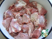 Мясо нарезать кубиком, примерно 5 на 5см. |