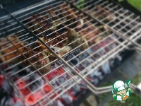 Обжарить мясо на горячих углях. Я использую очень удобную решетку -ТМ"Forester " |