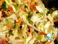 Капусту нашинкуем, огурчики нарубить соломкой, морковку на терке для корейской морковки. Пожать руками чтобы капуста стала мягче и присолить по вкусу |