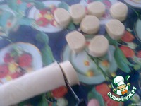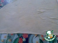 Замесить тесто средней крутости, скатать в шар, накрыть салфеткой, дать полежать 15-20 мин. После раскатать тонко - 1 мм. |
