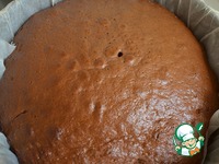 После того, как пирог остынет немного, разрезать его на 2-3 слоя. У меня получилось 2, т. к. я использовала форму диаметром 28 см |