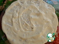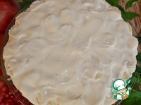 Смазываем щедро кремом нижний слой пирога |