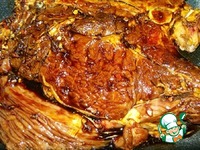 Убрать в подходящий контейнер, затянуть пленкой и поставить в холодильник. У меня мясо мариновалось 2 суток. Так выглядит мясо через 2 дня. |
