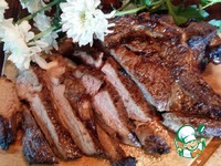 Любителям мяса этот стейк непременно придется по душе. Время приготовления блюда указано без учета времени, затраченного на маринование мяса. |