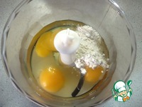 В чаше блендера смешиваем яйца, соль и разрыхлитель теста. |