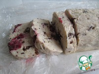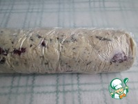 Включаем духовку на разогрев до 180 градусов. Противень застилаем бумагой для выпечки. Достаём тесто, снимаем плёнку и нарезаем тесто дольками, толщиной примерно 1 см. |