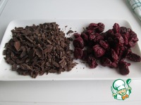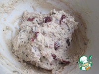 Муку просеять, добавить соль и разрыхлитель. Половину получившейся муки добавить в творожную массу и перемешать. Затем добавить вишню и шоколад. Перемешать. |