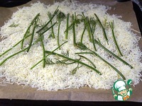 Противень застелить бумагой для выпекания, смазать ее маслом, посыпать слоем тертого пармезана. На сыр уложить веточки укропа, с которых предварительно оборвать зелень. |