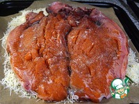 На эту подушку уложить рыбу кожей вниз. Посолить, поперчить. |