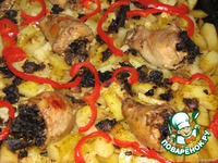 Описание: Я никак не могла решить, как же мне приготовить курочку: то ли по рецепту elena_110 «Курица с картофелем и луком «Аппетитная», или же по рецепту Julja_lja «Куриные ножки, фаршированные грибами и сыром». Затем решила, что не буду мучиться и объединю оба рецепта в один, конечно, внеся свои коррективы в приготовление. Именно в таких муках родилась «Бинарная курочка», но они того стоили!