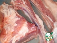 Ребра нарезать и поместить в кастрюлю с холодной водой. Дать закипеть и варить 15 минут |
