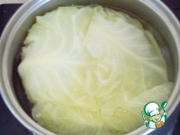 Для начала капустные листы нужно отварить до полуготовности. У меня кипели минут 5. |