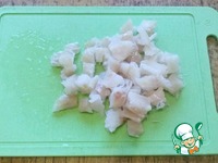 Теперь филе минтая (или любой другой рыбки по Вашему вкусу) нужно перебрать от костей и нарезать небольшими кусочками. |