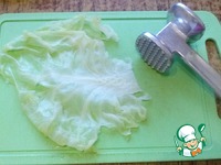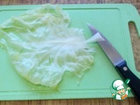 За это время капустные листы уже остыли, и можно срезать с них толстые прожилки |