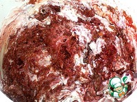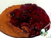 В миску с измельчённым печеньем переложила малиновое и вишнёвое варенье. ( Оставила немного измельчённого печенья для посыпки.) |