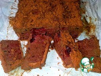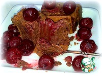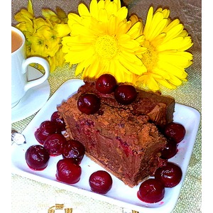 Сервировать пирожное со свежими ягодами. У меня замороженная вишня. Очень вкусно и шоколадно! |