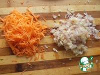 Лук мелко нарежем, морковь натрем на мелкой терке. |