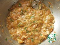 Перемешать и дать постоять от 15 минут до 1 часа. Фарш должен быть слегка жидковатым, как на оладьи. |