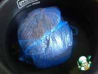 Все перемешать и выложить кусок мяса в маринад. Тщательно обмазать мясо и оставить мариноваться минимум на час. Замаринованное мясо выложить в пакет вместе с маринадом (обычный), туго завязать. |