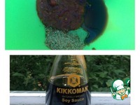 В посуду для маринования выложить сацебели, соевый соус, специи и соль. Если у вас нет сацебели -тогда возьмите густой любой томатный соус. |
