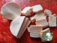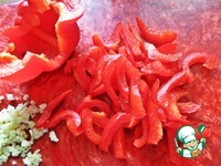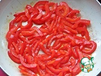 Небольшой сладкий перец или половинку крупного делим на полосочки. |