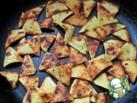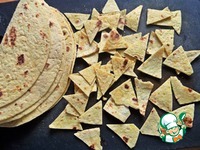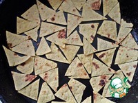 Для чипсов тортилью или лаваш настричь треугольниками. |