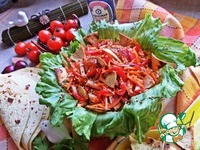 Описание: Берём готовую корейскую морковку или делаем сами! Добавим немного ветчины или колбасы... и хрустим вместе с самодельными чипсами!