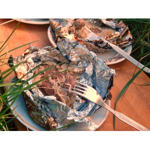 Сверху наматываем еще один слой фольги. Так запаковываем каждый кусок. Идем готовить угли для гриля. |