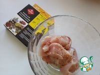 Куриное филе нарежьте на кусочки и приправьте специями для курицы от "Форестер".