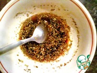 Приготовим маринад. После того, как я приготовил адыгейскую соль (есть рецепт на сайте), я стал ее фанатом. Высыпаем в подходящую посуду 2 чайные ложки адыгейской соли. Добавляем мед |