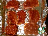Смазываем противень маслом и выкладываем мясо. Сверху каждого кусочка добавляем маринад в котором мариновалось мясо. Отправляем в разогретую до 180 градусов духовку, на 1 час. |