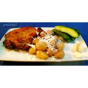 Описание: Очень нежное, вкусное мясо, впитавшее в себя все ароматы адыгейской соли и томатного сока. С молодым картофелем, превосходное сочетание. Приготовьте и не пожалеете. Начнем...