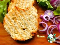 Быстро обжарим на мангале хлеб, подготовим овощи для подачи. |