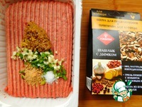 Приправляем фарш сухой приправой-гриль от Forester, зернёной горчицей, мелко-порезанным зубчиком чеснока, резанной зеленью и цедрой лимона. Я дополнительно добавила 1 чайную ложку соли. |