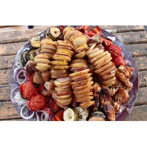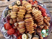Описание: Простой и очень вкусный рецепт картошки с салом (или беконом) на шампурах. Картошка получается нежной, копченной, с ломтиками поджаристого мяса (если использовали бекон).