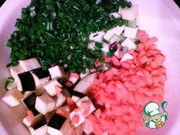 Морковь нарезаем на более мелкие кубики. Лук нарезаем произвольно |