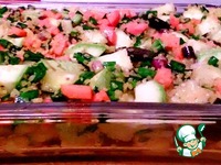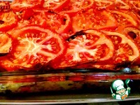 Нарезаем кружочками помидоры и выкладываем сверху. Отправляем в духовку при температуре 150 градусов на 1,5 часа |