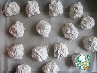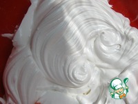 Белки с лимонным соком взбить до устойчивых пиков, постепенно добавляя сахар. |