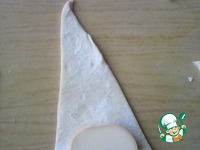 На широкую сторону треугольника кладем кусочек сыра |