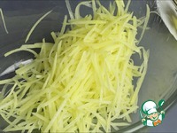 В разогретое подсолнечное масло небольшими порциями выкладываем картофель. Жарим до золотистого цвета. Достаем картофель и раскладываем на бумажное полотенце, чтобы стекло масло. |