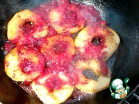 Описание: В продолжении темы дня Рождения моей подруги на праздничный стол приготовили красивое и вкусное блюдо из ломтиков жареной на гриле грудки с карамелизированными яблоками и клюквой.