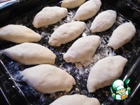 Сформировать пирожки, выложить их на присыпанный мукой противень, смазать взбитым яйцом. |