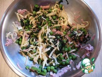 Зеленый горошек бланшировать в кипящей подсоленной воде 3-4 минуты. |