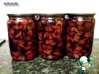 После очистки, литровой банкой, замеряем количество вишни. Банку не забиваем. просто добавляем лишнюю горсть вишни к каждой банке. Перекладываем таким образом вишню в другую миску. Нужно это для того, чтоб узнать количество сахара нужное для приготовления. На одну банку нужен один стограммовый стакан. У нас получилось посчитать пять банок и пять горстей. Значит засыпаем сверху пятью стаканами сахара. Ставим на плиту миску. Часто, но аккуратно помешиваем вишню. Она пустит много сока. С момента закипания, выдерживаем ее 10 минут. |