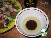 Для заправки смешать соевый соус и рыбий жир из банки. |