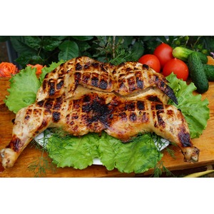 Описание: Румяный и сочный цыпленок с хрустящей корочкой. Аромат чеснока и специй от Форестер просто сводит с ума! Попробуйте)