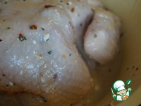 Цыпленка облить маринадом и оставить мариноваться минимум на час в холодильнике. |